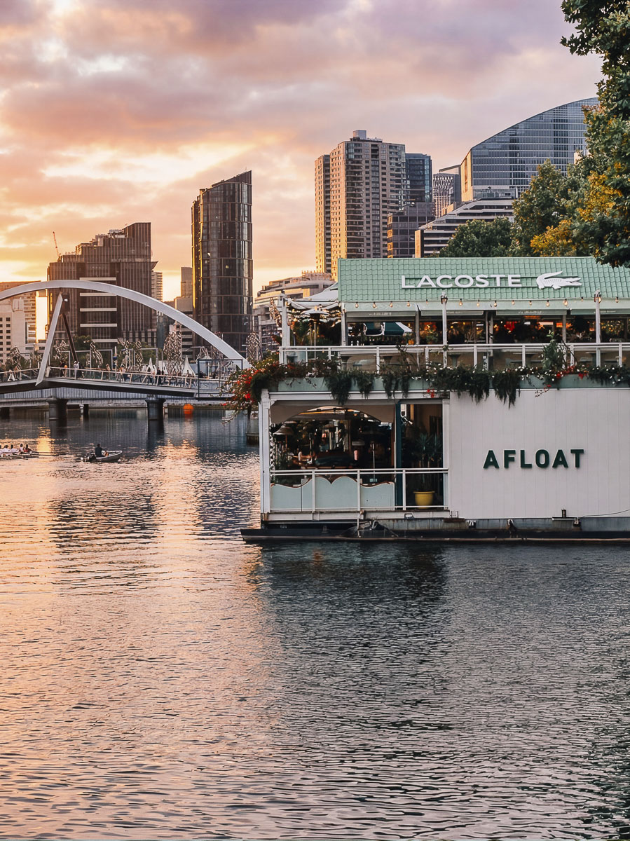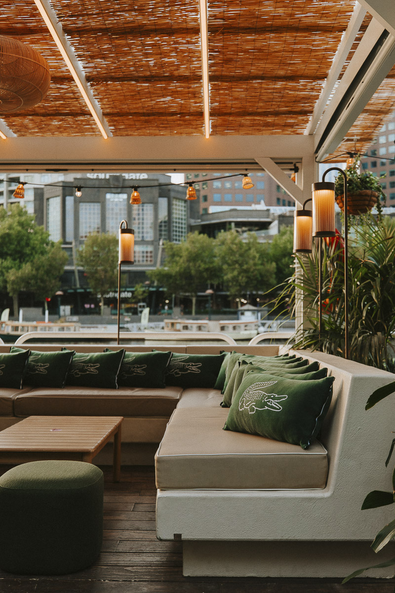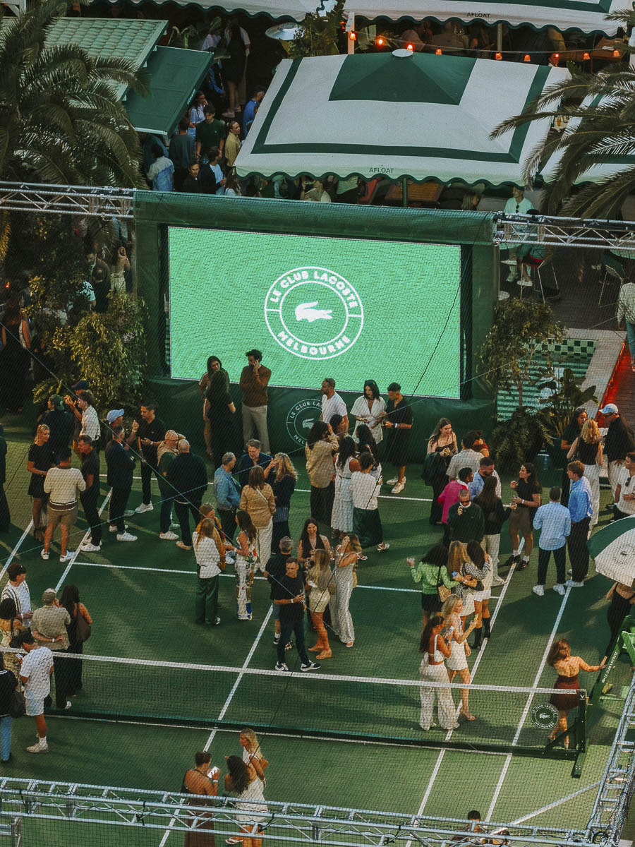 Le temps d’une soirée, Lacoste a privatisé l’Afloat, l’un des bars les plus emblématiques de Melbourne. Le but était de faire une soirée de lancement pensée comme un vrai moment de rencontre. Ainsi, athlètes et talents s’y sont retrouvés avec à côté, un court de tennis flottant sur l’eau installé pour l’occasion. Là-bas, ils y ont échangé quelques balles dans une ambiance détendue.