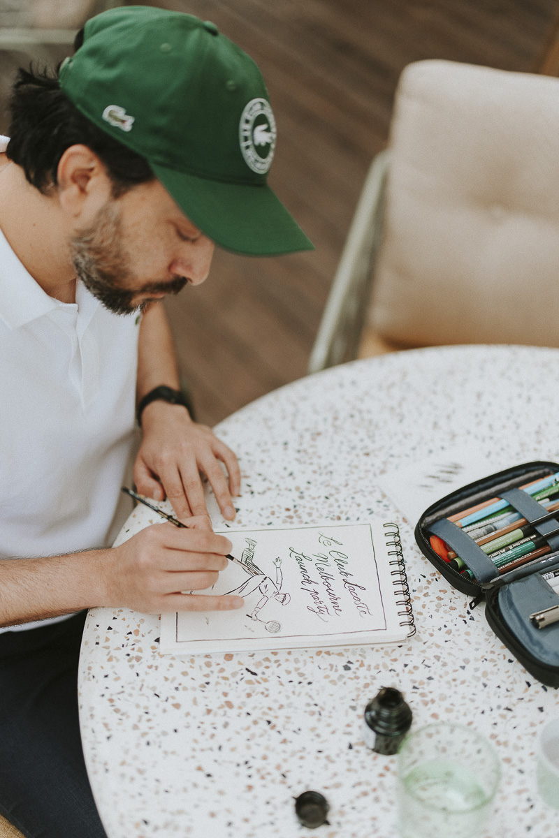 Notre rôle a débuté avant ce voyage à l’autre bout du monde. En effet, nous étions chargés d’imaginer les concepts de vidéos qui allaient être réalisés sur place. Parmi ces concepts, nous retrouvons par exemple une vidéo POV avec l’illustrateur Jeff The Peff. Ainsi, dedans il dessine des invités de la Team Lacoste en direct, devant eux. Nous étions également chargés de faire les photos durant l’événement, la soirée, et d’immortaliser plus en détails certains talents. Ainsi, nous avons par exemple réalisé un concept tendance de photo avec un fond interactif.